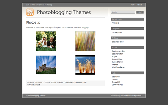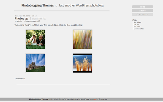 We had the chance to carefully select 30 beautiful photoblogging themes for WordPress. We downloaded them and for the sake of reviewing, similarity and differences, we tried them on a test blog and generated the screenshots. Check out this list and tell us which one you like the best. Note that the content used for testing is the same.